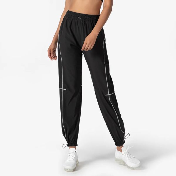 Customized Women Contrast Color Drawstring Bottom Quick Dry Casual Sports Nylon Track Pants$9.6