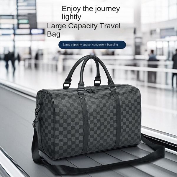 Large Capacity Waterproof PU Travel Bag New Chessboard Plaid Fashionable Geometric Crossbody Portable Storage Luggage for$8.08