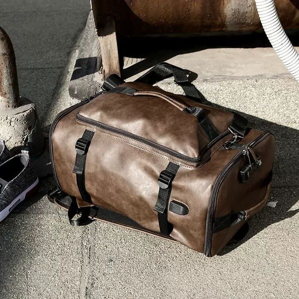 Trendy Lightweight PU Leather Backpack for Men Large Capacity Multi-Functional Portable Travel Bag Zipper Outdoor Fashionable$16.21