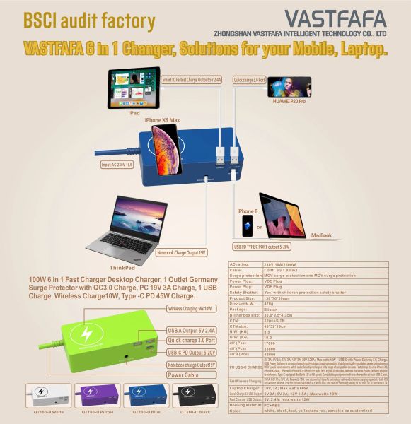Battery Charger Laptop Charger with EU French Plug & USB Fast Charging for Laptop Computer$14.9