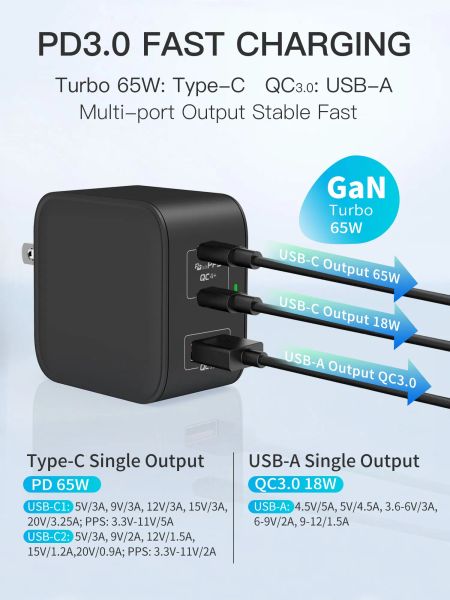 QC 3.0 USB C 65W GaN Wall Charger Pd Fast$13.9