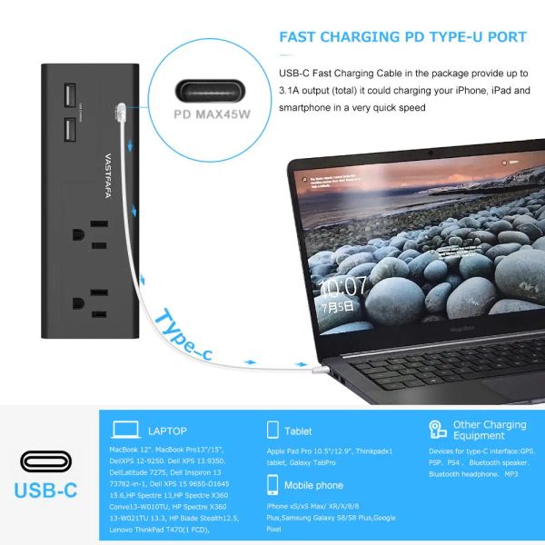 Us 15 Way America-Type Outlets 6 USB Type C Pd Fast Charger Surge Protector Power Socket$10.05