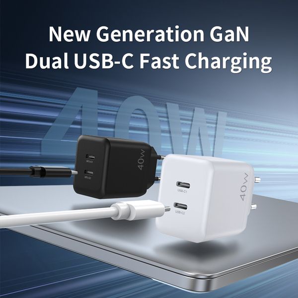 Universal Intelligent Dual USB-C PD 40W GaN Charger Fast Charging Chargers for iPhone 17 16 HUAWEI SAMSUNG Mobile Phone 16 15 & 14$4.92