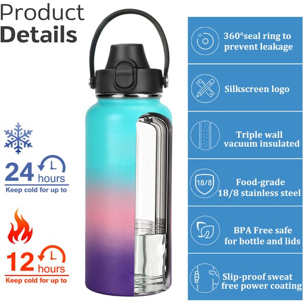 24 oz 32 oz Insulated Water Bottle Stainless Steel Double Wall Vacuum Thermos Freesp Water Bottle with Straw Lid$4.6