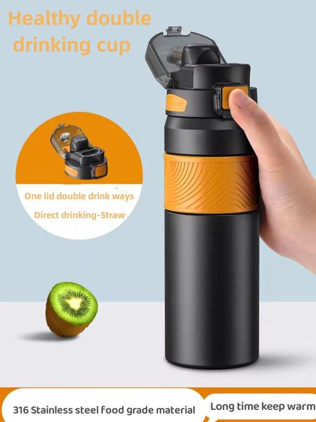 Wholesale Double Wall Sports Water Bottle Thermos Water Bottle OutDoor Water Bottle Travel Cup With Straw$3.61