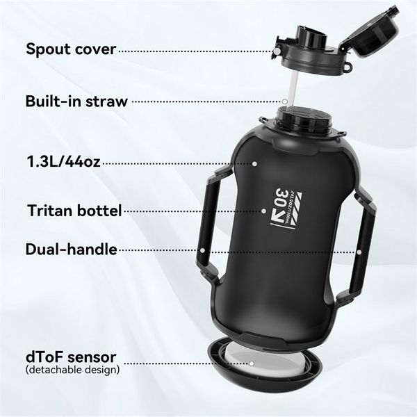 1300ML Plastic Water Bottle Bpa Free Plastic Drink Bottle With Straw Sport Outdoor With Led Track Your Water Intake$19.99