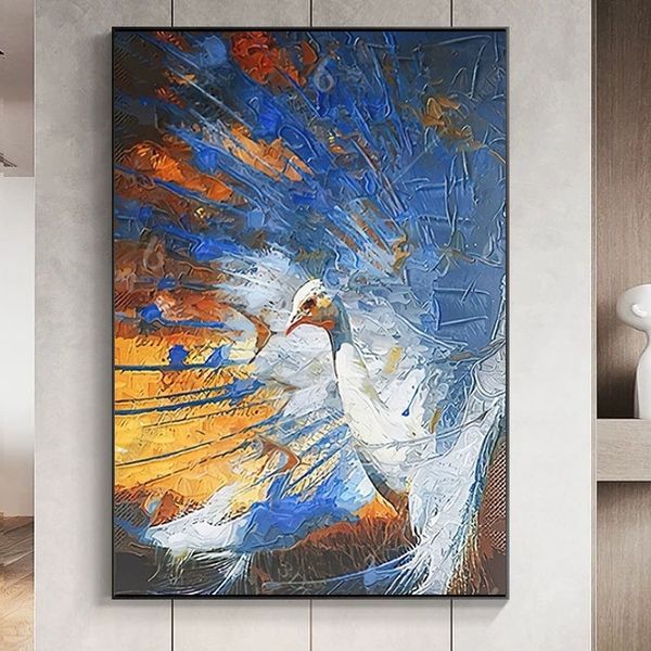 Custom Wholesale Modern Peacock Canvas Painting Wall Art Set Premium Cotton Canvas Artworks Contemporary Geometric Accents$62