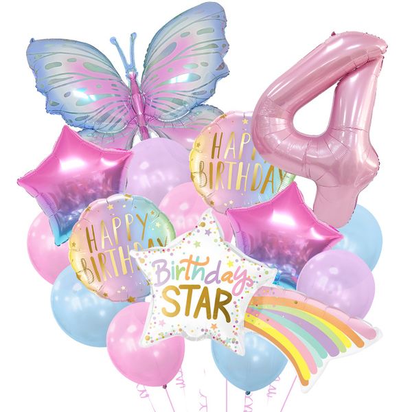 Butterfly Balloons 32inch Number Balloon Set Happy Birthday Butterfly Foil Balloon Baby Shower Party Decors Helium Globo$1.3