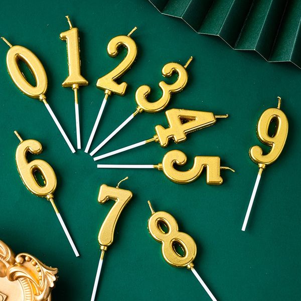KLS Wholesale Metallic Gold Number Birthday Candle Children Birthday Party Baking Cake Decoration Candles$0.07