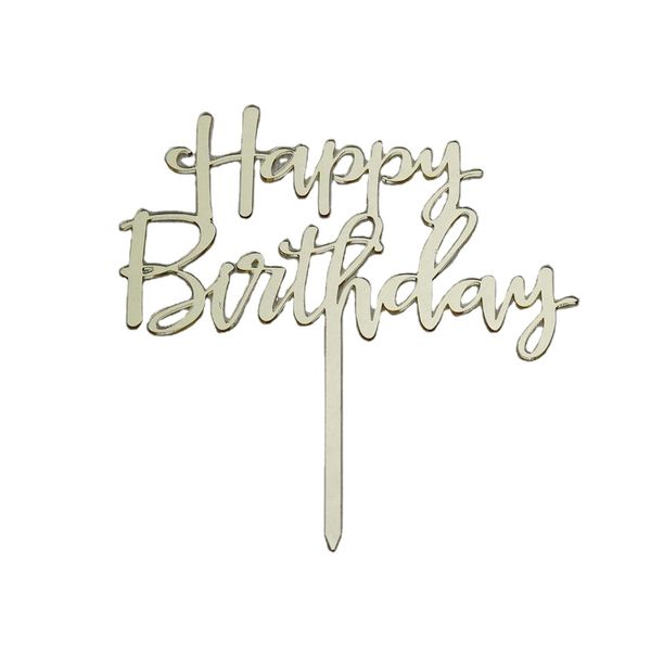 Wedding or Happy Birthday Cake Topper Birthday Party Decorations Mirror Gold Acrylic Cake Decoration Supplies$0.17