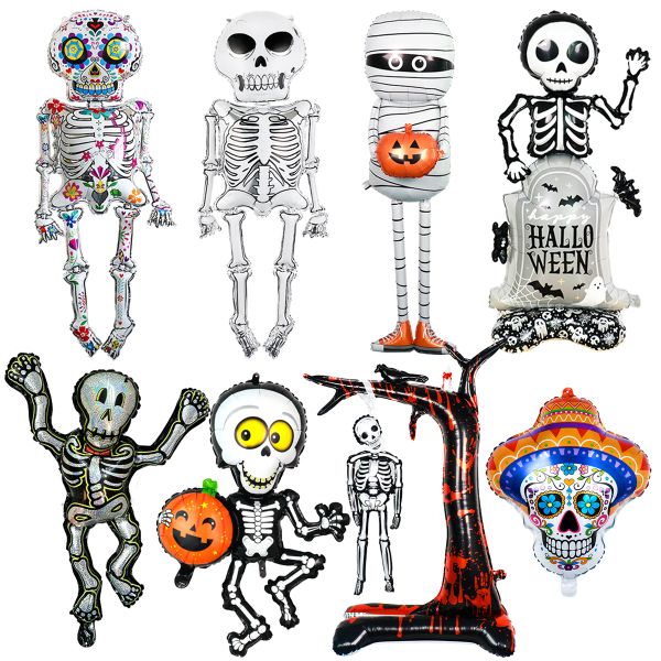 Large Skeleton Man Balloons Halloween Decorations Globos Scary Halloween Skull Ballons Halloween Party Home Decorations$0.14