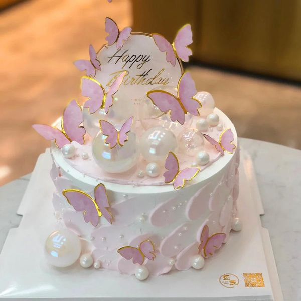 Pink Purple butterfly Cake Toppers, Birthday Party Wedding Decoration Supplies$0.2