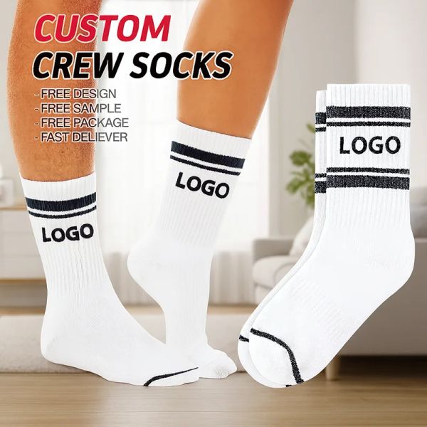 Factory Custom Socks Custom Logo High Quality Custom White Socks Cotton Comfortable Crew Socks With Logo for Unisex$0.29