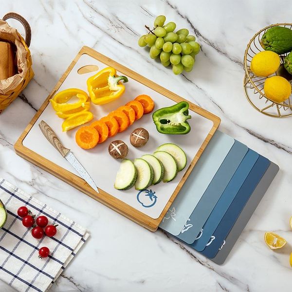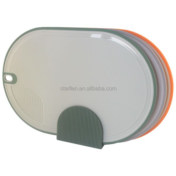 New Arrival 4 Piece Colorful Set Food Grade Plastic Index Cutting Board Set with Holder$5.91