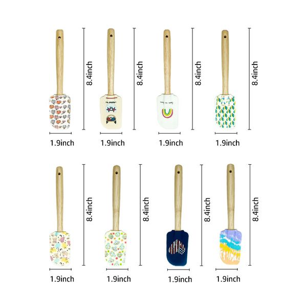 Custom Big Size Colorful Printing Food-Grade Silicone Spatula Wooden Handle for Cake Baking Spatula$0.32