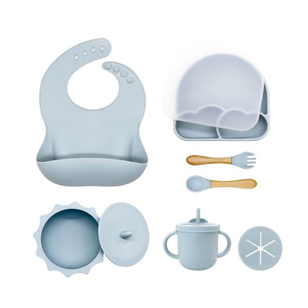 7PCS Silicone Feeding Set Baby Silicone Tableware Set Children Bib Bowl Dinner Plate Spoon Fork Water Snack Cup Kids Dinnerware$0.57