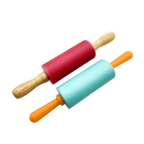 Wooden Silicone Small Mini Size Kids Play Kids Baking Tools Food Grade Silicone Rolling Pin BPA Free$0.48