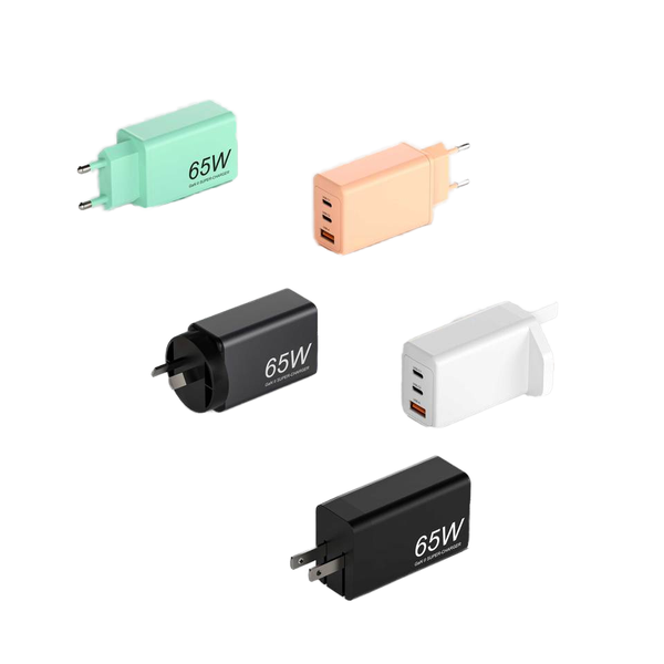 3 ports 65W USB PD 3.0 charger for laptop and mobile phones, GaN mobile phone chargers$8