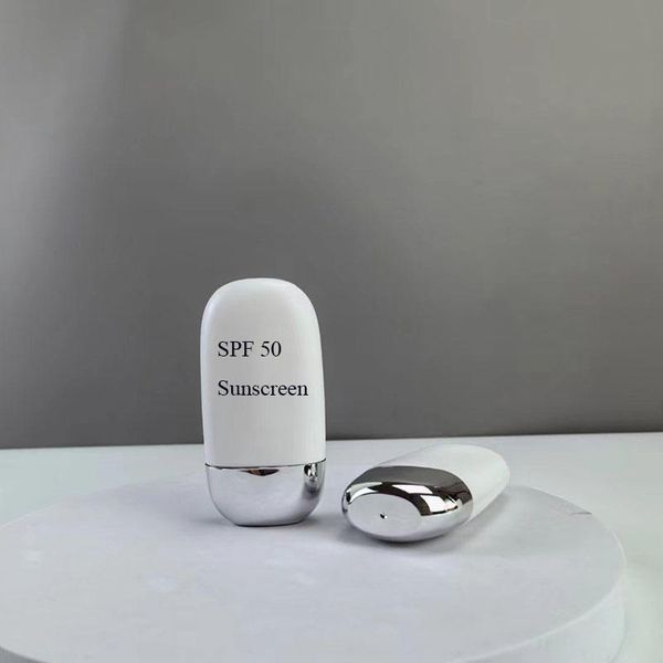 Luxury 50ml Silver Double Egg Shape Sunscreen Bottle Oval Container for Shampoo Lotion Face Mask and Skincare Cream Packaging$0.35