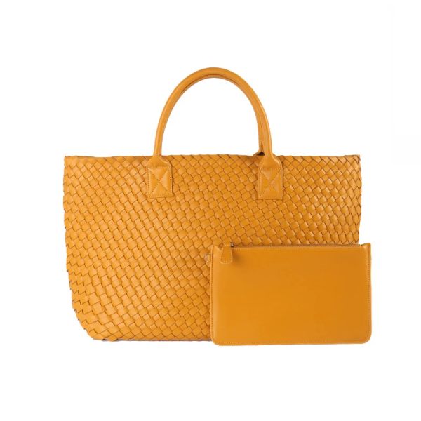 2025 Custom Handmade Woven Genuine Leather Tote Bag for Women Bags with Pouch$29.53