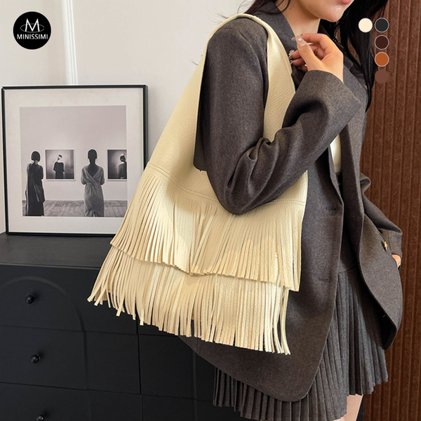 Solid Color Tassel Fashion Torebka Na Ramie Pu Daily Life Womens Shoulder Bags Women Bags Handbag$5.53