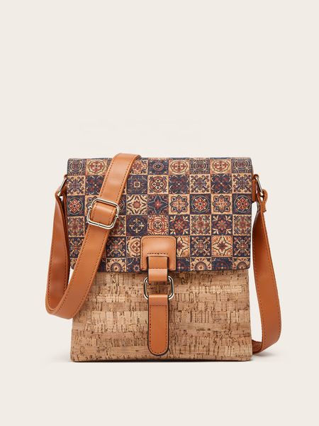 WS19 PU Belt Large Capacity Vintage Round School Bag New Crok Design Flower Printing Knapsack Rucksack Bag Cork Backpack$9.5