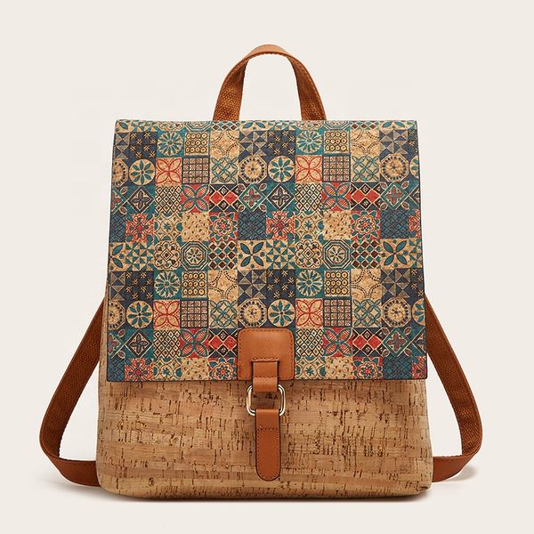 WS16 High Quality Europe Fashion Vintage Casual Cork Backpack Luxury Pu Leather Classic Retro Rose Pattern Travel Bag$8.6