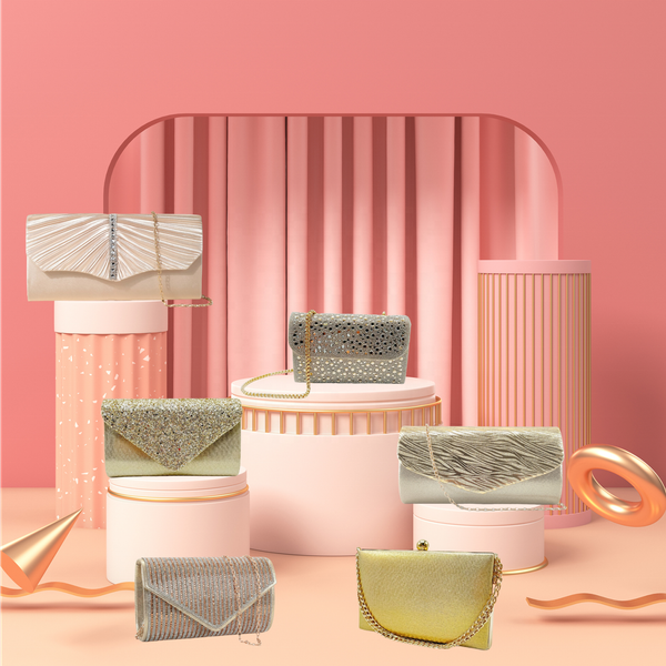 RB362 Womens Golden Glitter Clutch Purse Pleated Evening Bag for Bridal Wedding Party with Rhinestone Flash Material Chain$6.8