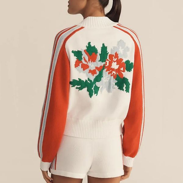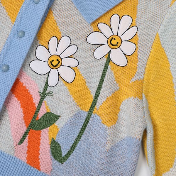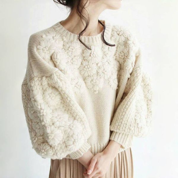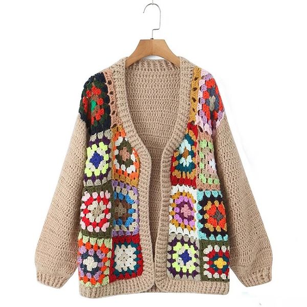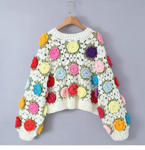 Casual Vintage Multicolor Handmade Flower Cardigan Sweater Loose Knitted Women Clothing Top for Lady$46.01
