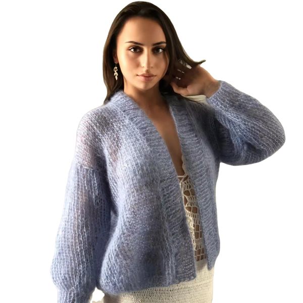Wholesale Custom Fuzzy Mohair Women Knit Cardigan Sweater Winter Soft Warm Knitwear Solid Color High-Quality OEM ODM Casual$7.99