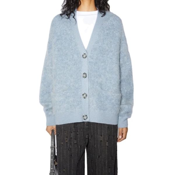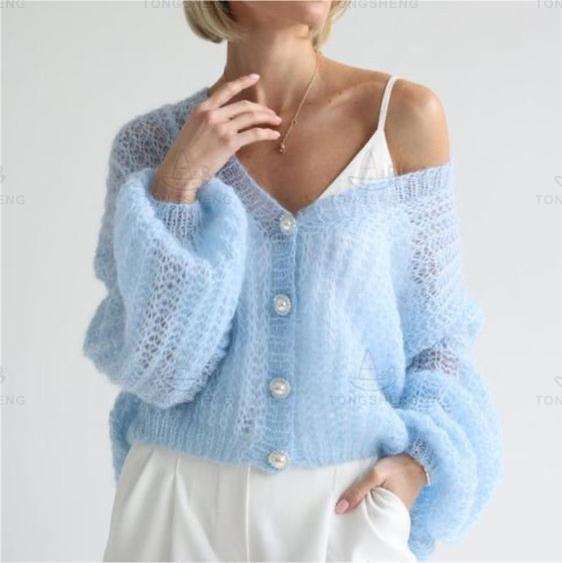 Wholesale Custom Available Mohair Women Knit Cardigan Causal Knitted Sweater V-neck Single Breasted High-Quality OEM Knitwear$8.85