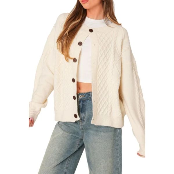 2025 Spring Solid Color Oversized Knitted Coat Single-breasted Buttons Double Pockets Women Sweater Cardigan$10
