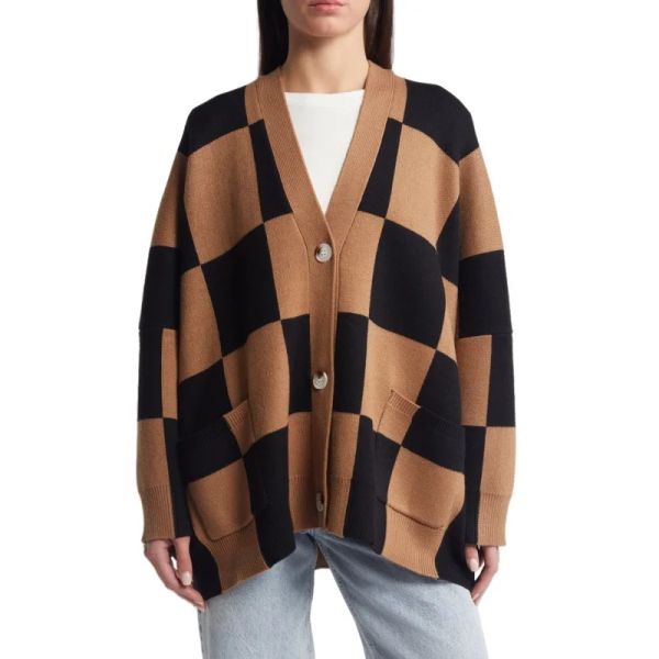 Factory Price Custom Plaid Long Sleeve Coat Cashmere Women's Sweaters Sweater Women Womens Cardigan$11.8