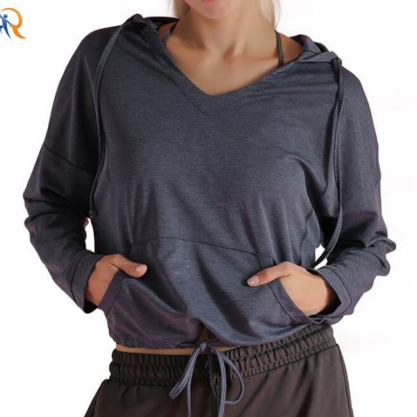 Wholesale Ladies Sexy Running Sports Crop Top Hoodie Women Gray Blue Color Fitness Woman Hoodies$4.9