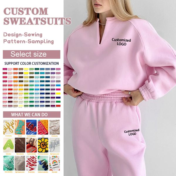 Custom Tracksuit Women High Quality Solid Color Sweatpants Two Piece Set Pullover Hoodie French Terry Jogger Sportswear$18.56