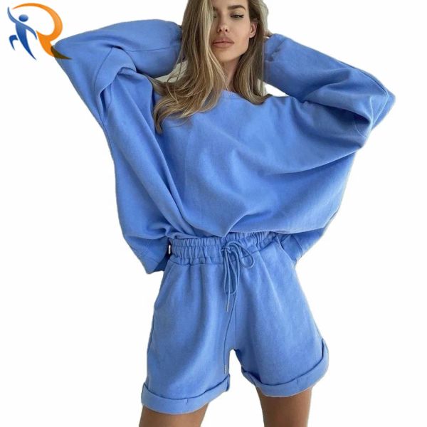 Women Matching Color Sweatshirt Shorts Loose Tracksuit$12.6