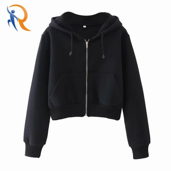 Front Zip up Long Sleeve Custom Top Hoodie Woman Cropped Sweatshirt Crop Hoodies for Women$8.5
