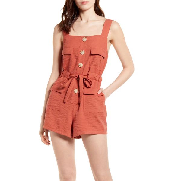 Button Front Pocketed Women Sleeveless Romper$7.5