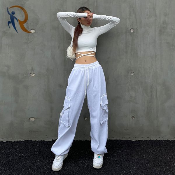 New Arrival Comfy Cotton Woman Pants Streetwear Jog Pant Loose Trousers Causal Women Cargo Pants$10.8