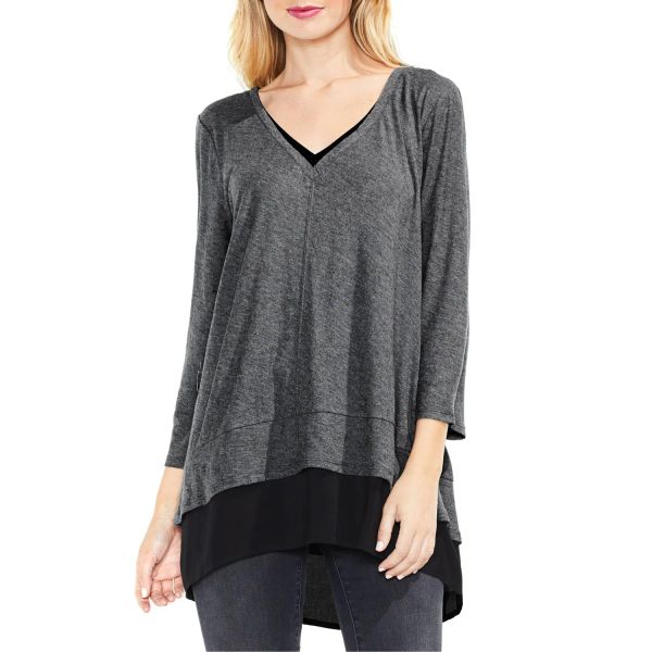 Woven Hem Layered Look Slubbed Jersey Women Mixed Media Top$6.5