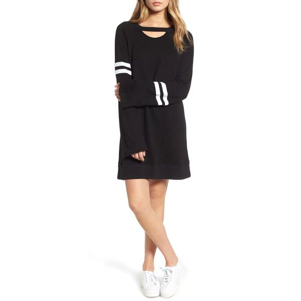 Stripe Sleeve Choker Neck Women Athletic Sporty Gym Sweatshirt Dress$10.2