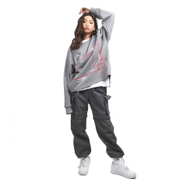 100% Cotton Oversized Terry Gray Crewneck Hoodies Sweatshirts for Women$9