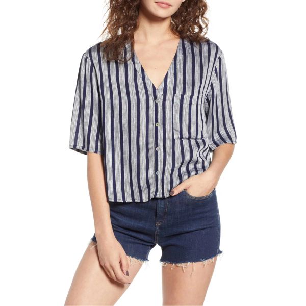 Wide Cropped Women Stripe Boxy Blouse$8.5