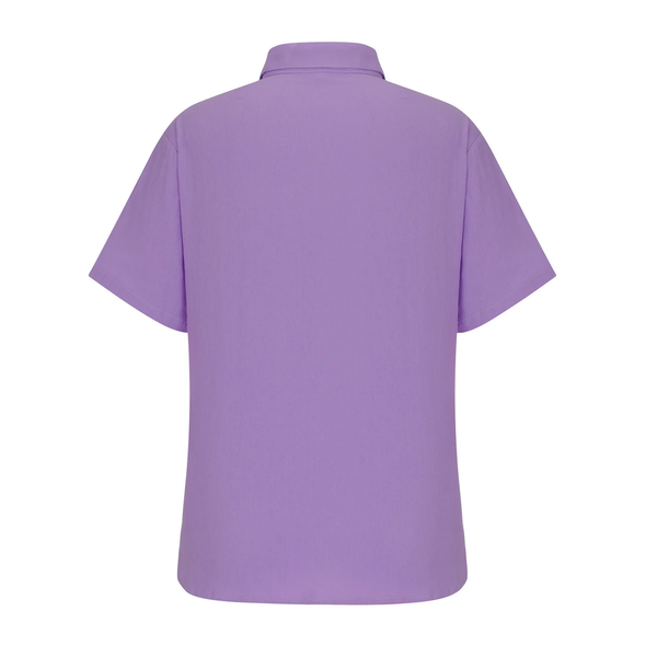 OEM Custom Logo Design 100% Linen Men's Regular Fit Purple Short Sleeve Turn Collar Shirt Anti-Wrinkle Solid Color Made$0.99