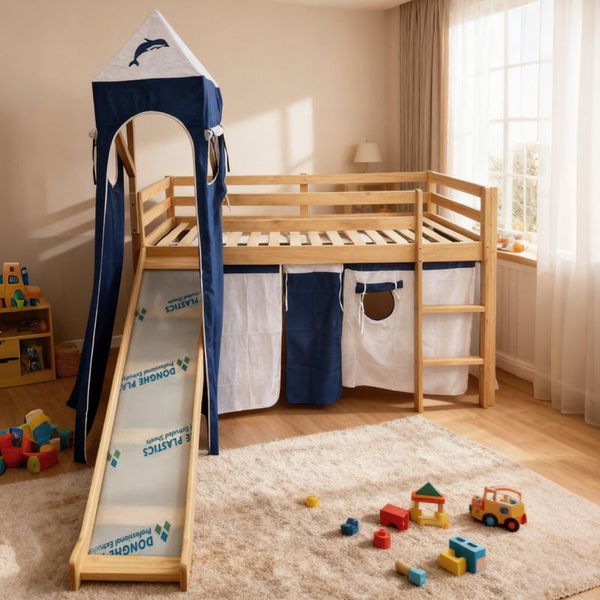 Children's Mezzanine Bed Single Child Montessori Loft Wooden Bunk Bed Children Beds with Slide$59.99