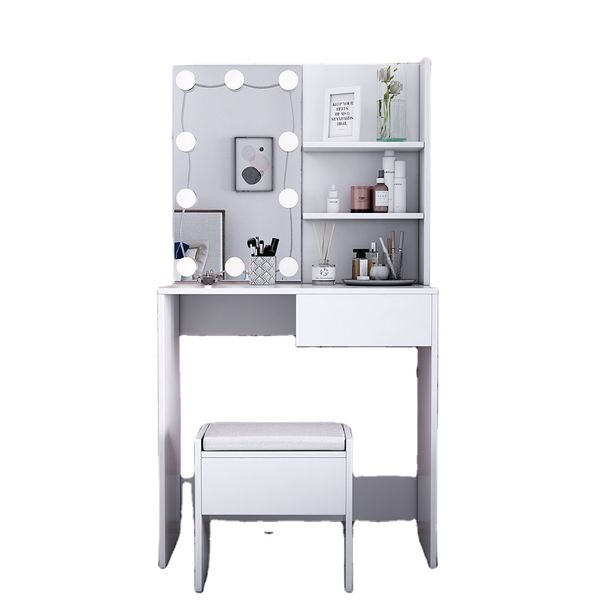Customized Bedroom Decorative Floor LED Standing Mirror Wheels Wooden Framed Full Body Mirror with Makeup Cabinet$69