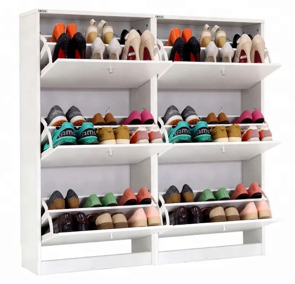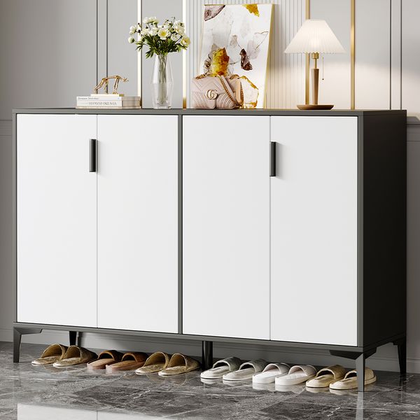 Porch Light Luxury Wooden Four Door Shoe Cabinet Shoe Display Rack Shoes Cabinet Modern Wooden$27.28