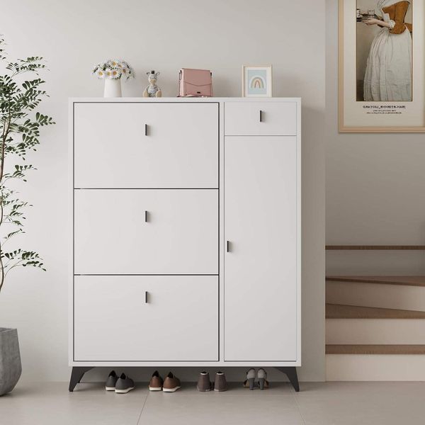 Modern Slim Wooden Shoe Storage Cabinet with 3 Flip Drawers 1 Door Organizer for 22 Pairs Style Boot Rack for Home Entryway$42.4
