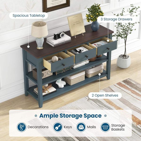 Modern Farmhouse Entryway Console Table with 3 Storage Drawers 2 Open Shelves Narrow Wooden Couch Side Sofa Table MDF Material$99.7