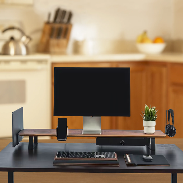 Dual Monitor Stand Wooden Walnut Plywood Solidwood Desk Accessories-Monitor Riser for Dual Monitor Laptop Set$45